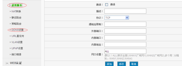 4.如果還要在外網(wǎng)看監(jiān)控,則要在路由器上配置虛擬服務(wù)器;如果沒有固定IP地址,還要在路由器上設(shè)置DDNS。